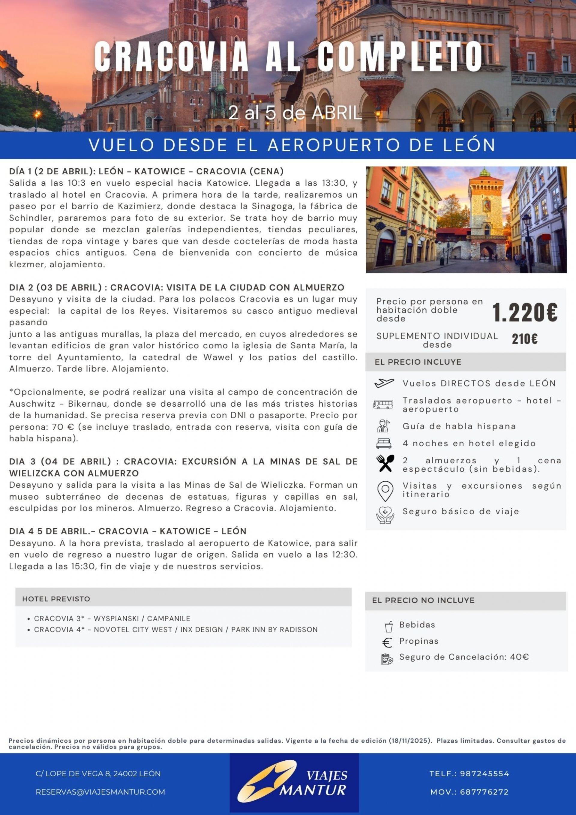 CRACOVIA SEMANA SANTA desde aeropuerto de León